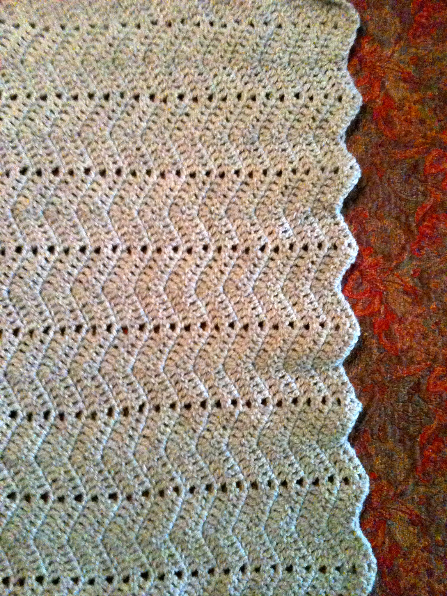 And it means I can make stuff! The photo above is the edge of a wrap I made for myself, using a free pattern I found online; it’s a little grannyish (not that there’s ANYTHING wrong with that) and perfect to keep right by the bed, so I can throw it on and shuffle off to the kitchen to make myself some morning coffee.