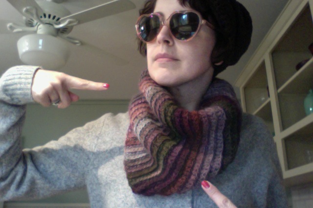 1. First things first: check out my latest crocheting project, the cowl modeled above by a certain festive someone (who is wearing a hat to hide some pretty serious bed head). I finished it yesterday, just in time to wear it on my date with my Valentine tonight!