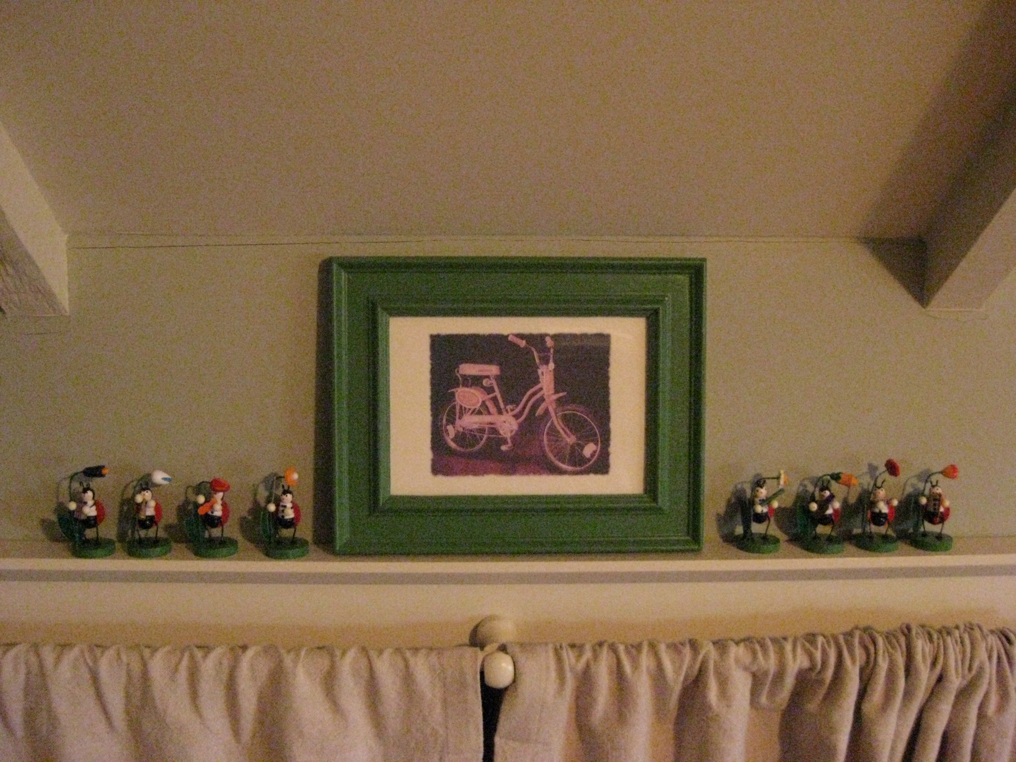 Atop this shelving is my shrine to The Bike that Got Away, Sweet Thunder.