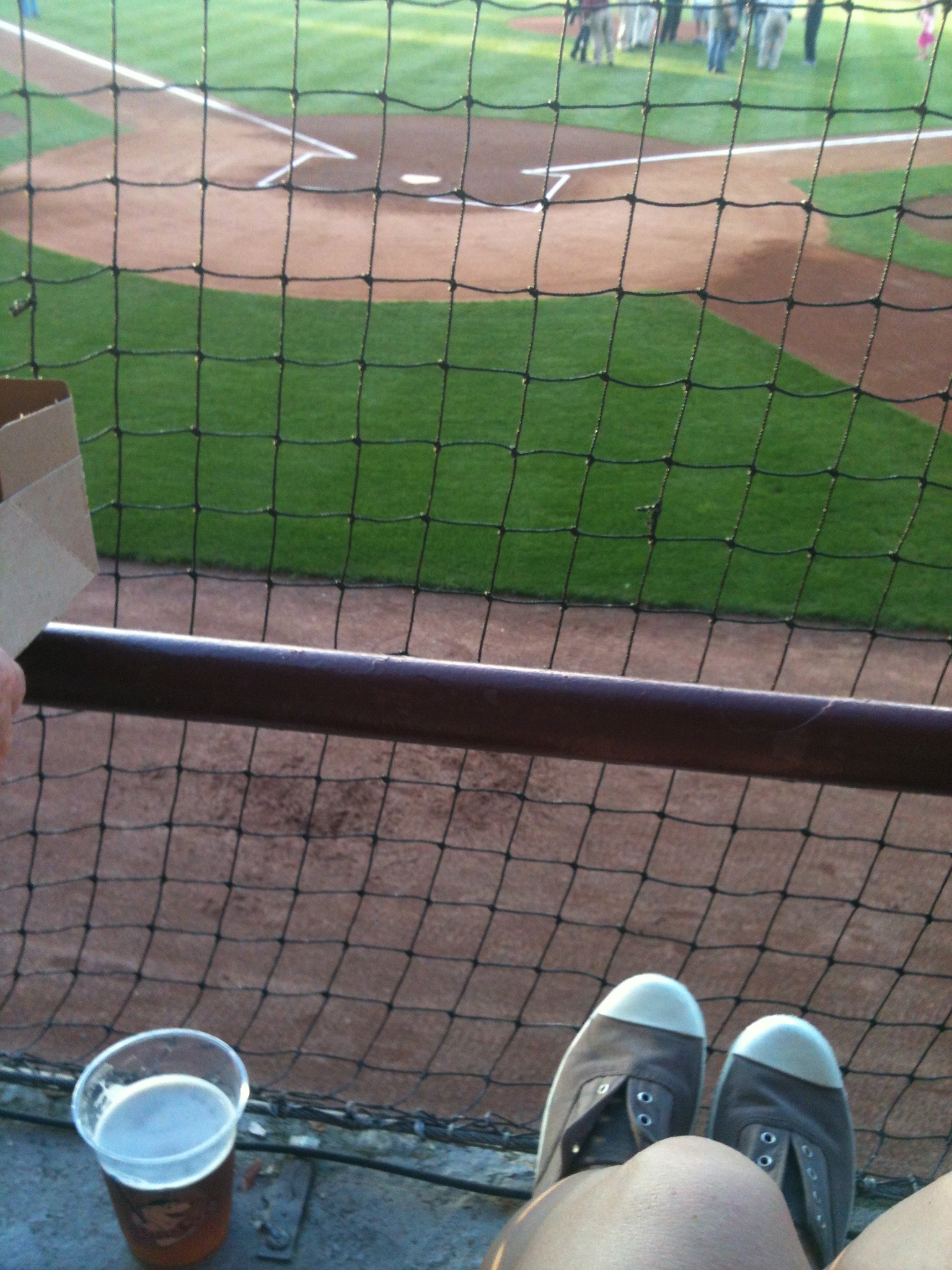 Photo: Moi enjoying a front-row seat (and a Green Monsta Ale) at McCoy Stadium this summer. Go Pawsox!