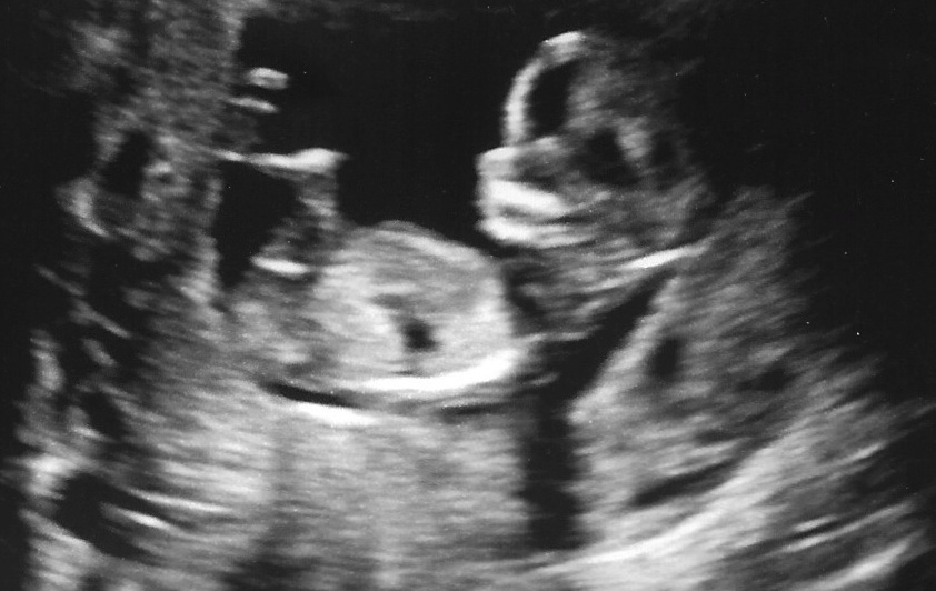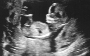 Yes, friends, this lady has a bun in the oven. (Above is the latest paparazzi shot of the little bugaloo; looks like it’s already developing a good-sized noggin, just like its mama.)